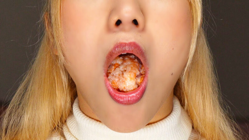 美しいお姉様がご飯を食べている時の口の中が見てみたい…。くちゃくちゃ音を立てて咀嚼、その口を開けて、咀嚼した物を器に吐き出す。お寿司を食べている時のくちゃくちゃ、ピザを食べる時のむしゃむしゃ音、どれも近くでじっくり見せてくれます。パスタは手づかみで口に入れ、ちゅるちゅるくちゃくちゃ音を立ててよく噛んでから咀嚼物を吐き出し。アイスをいやらしく舐めた後は、口を開けてぴったりニットにタラ~ッと垂れ流し…。最後はシュークリームを咀嚼して口の中で優しく温め、そのままディルドをくちゃとろフェラ。唾液とクリームがぐちゃぐちゃに混ざった咀嚼物をボトボト垂らしながらの極上フェラをノーモザイクで最後までじっくり堪能してください…!