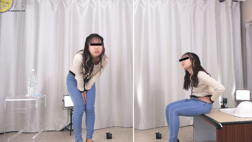 時間制限式の鍵をつけたベルトを巻き、デニムを履いておしっこを我慢!トイレが目の前にあるのに脱げずに悶絶する女たち。ソワソワ、もじもじと我慢を続けるが…今回は結局全員がお漏らし。ぴっちりフィットしたデニムの股間部分がジワ~っと濃く染まり、大きな恥ずかしいシミを作ってしまう女たちの失態に注目。4名おしっこ。【つき】スレンダー美女。へそ出しルック故、尚更お腹のポッコリが強調。へっぴり腰で頑張るが、そう長くは持たず…。失禁跡が足元へ伸びゆく。【えりか】綺麗系お姉さん。内股気味で「おしっこ漏れちゃう!」宣言から間もなく、「ダラダラ…」デニムからは尿雫が溢れ出し床はびしょ濡れ。【かえで】人気のモデルさん。限界のあまり○引にズボンを脱ごうと試みる場面も。根気強く我慢し水分まで摂取するが裏目に!?残り僅かで失禁。【はな】元気いっぱいの可愛いお嬢さん。チャレンジ開始から10分以上、片時も股間から手を放すことなく我慢。コミカルな動きもクセになる。(排泄屋) ※本編顔出し