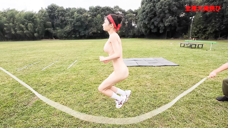 人気AV女優たちが運動能力を試すカラダとマンコが悲鳴をあげる限界突破の戦い!所属プロダクションを代表してエントリーした女優3名が「全裸スポーツ女王」を目指して己の限界に挑戦。意地とプライドを賭けた女たちのバトルがいざ開幕!!【第1種目/全裸体力テスト】前屈・上体反らし・反復横跳び、以上の3つ合計を測定【第2種目/全裸大繩跳び】大縄跳びに2回挑戦し、合計記録を測定【第3種目/100mディルドハードル走】各ポイントに設置されたディルドを指定の回数をピストンしながらゴールまでのタイムを測定。巨乳・巨尻を揺らして戦う女たち「鍛え上げたマンコで正々堂々戦っていきたいと思います!」